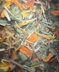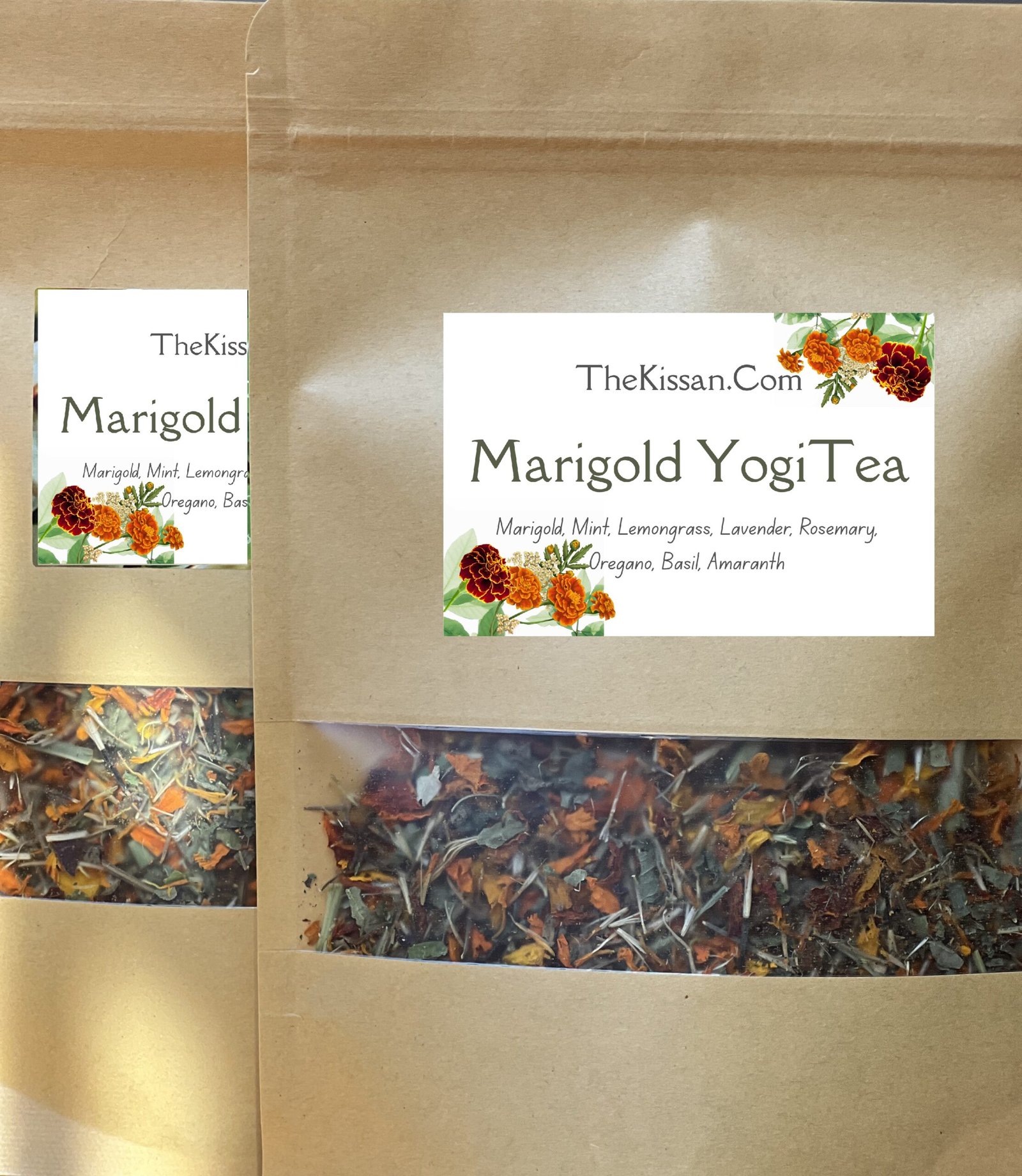 A blend of Marigold, Lemongrass, Mint, Lavender, Rosemary, Oregano, Basil and Amaranth. This is an herbal tea with no caffeine.